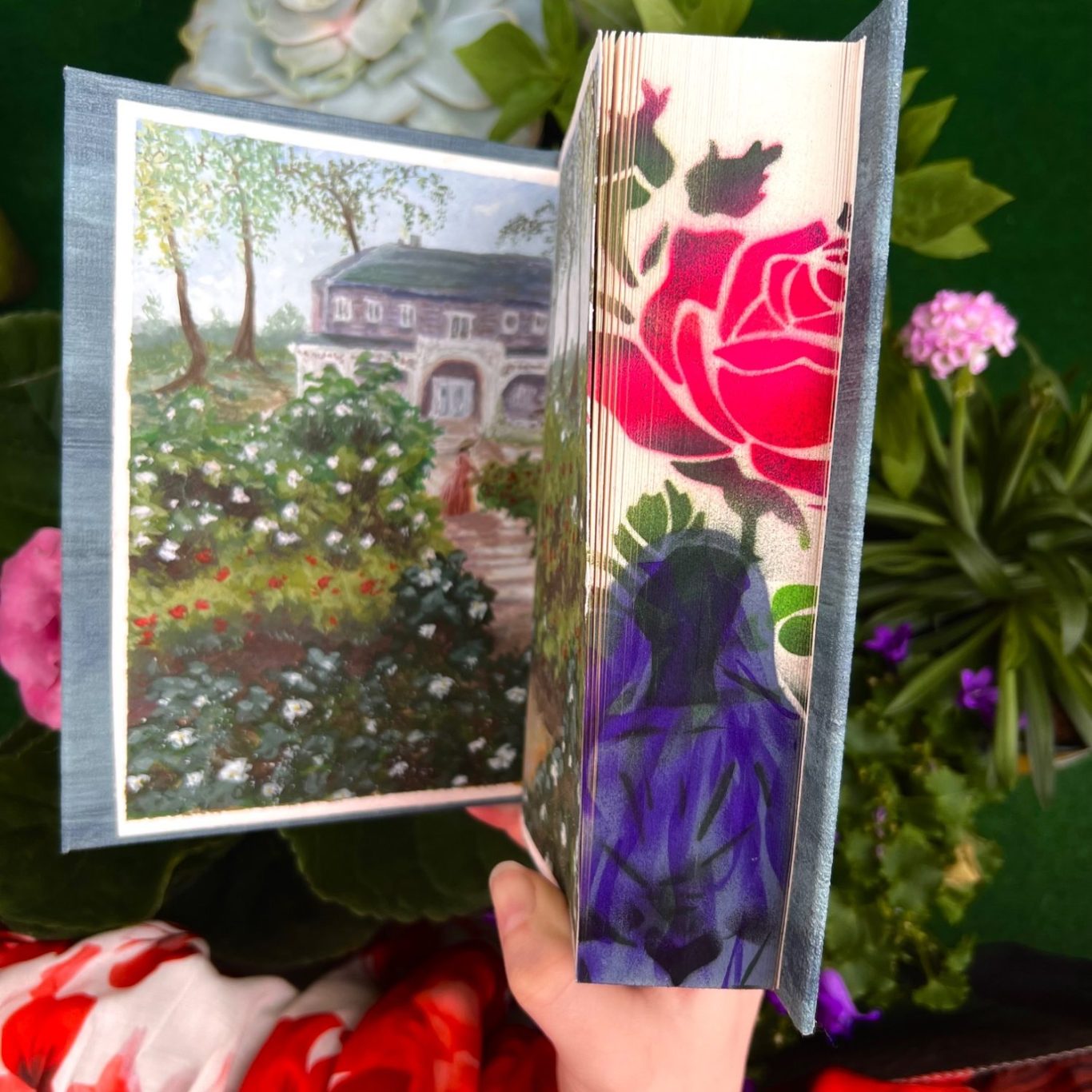 Ich fertige neue Einbände oder kosmetische Restaurationsarbeiten für Bücher an. Je nach Wunsch kann das komplette Buch umgestaltet werden: Bemalter Einband, illustrierte Vorsatzblätter vorn und hinten, bemalter Buchblock und sogar Illustrationen auf den Buchseiten sind möglich.