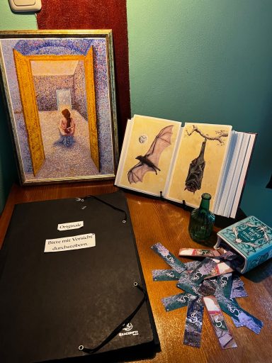 Meine erste Erfahrung mit einem Kunstmarkt hat mich ziemlich geerdet zurückgelassen. Ich hab insgesamt 2 Postkarten verkauft und mir viele Beleidungungen á la „Haben Sie auch eine richtige Arbeit? Von sowas sollte man nicht leben können,“ eingefangen, es hat gestürmt und geregnet und meine Bilder mochten das natürlich überhaupt nicht. Danach folgte ein Innehalten und ein neues Konzept.